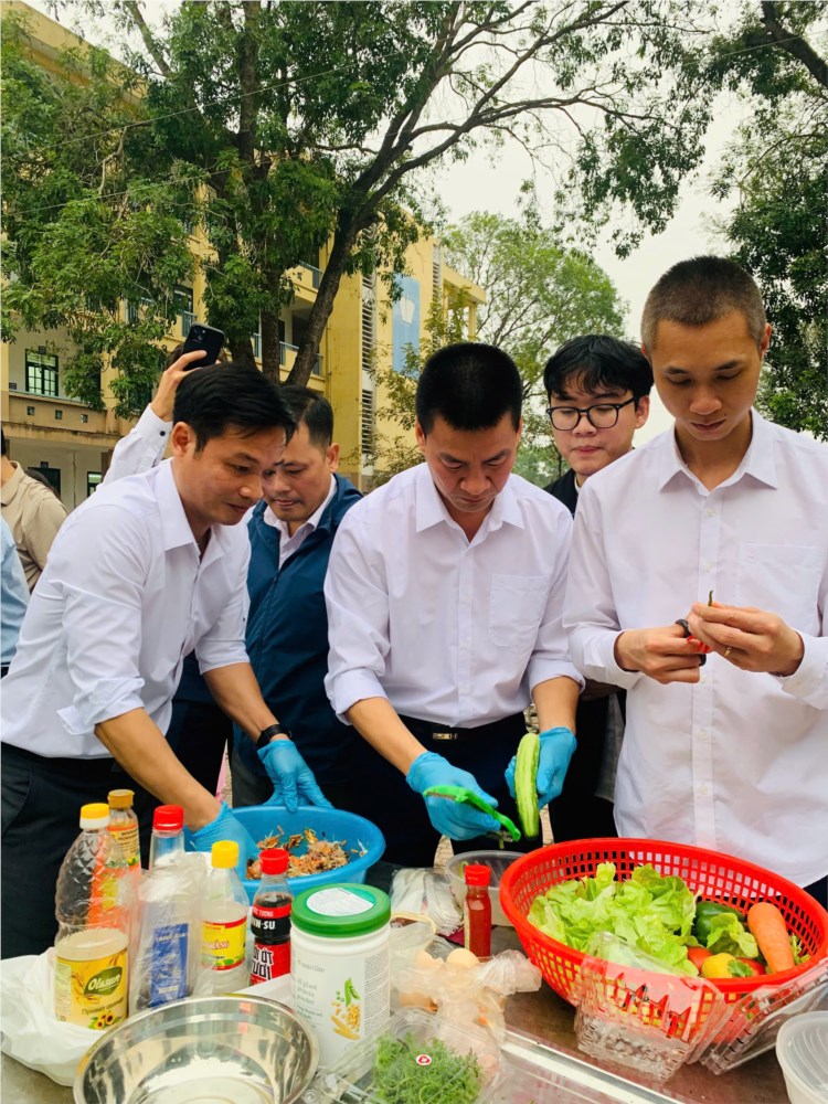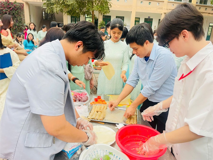 Không kém phần hấp dẫn, hội thi nấu ăn dành cho các thầy giáo do Công đoàn trường tổ chức đã mang đến những khoảnh khắc thú vị và vui vẻ. Các thầy giáo – những người thường ngày gắn liền với phấn trắng bảng đen – nay lại thể hiện tài năng bếp núc. Với sự khéo léo và tinh thần đồng đội, các đội thi đã mang đến những món ăn không chỉ ngon mắt, ngon miệng mà còn chứa đựng tình cảm chân thành dành cho đồng nghiệp nữ nhân ngày đặc biệt này. Hội thi không chỉ tạo ra tiếng cười mà còn giúp thầy cô có thêm những kỷ niệm đáng nhớ, tăng thêm sự gắn kết giữa các thành viên trong trường.