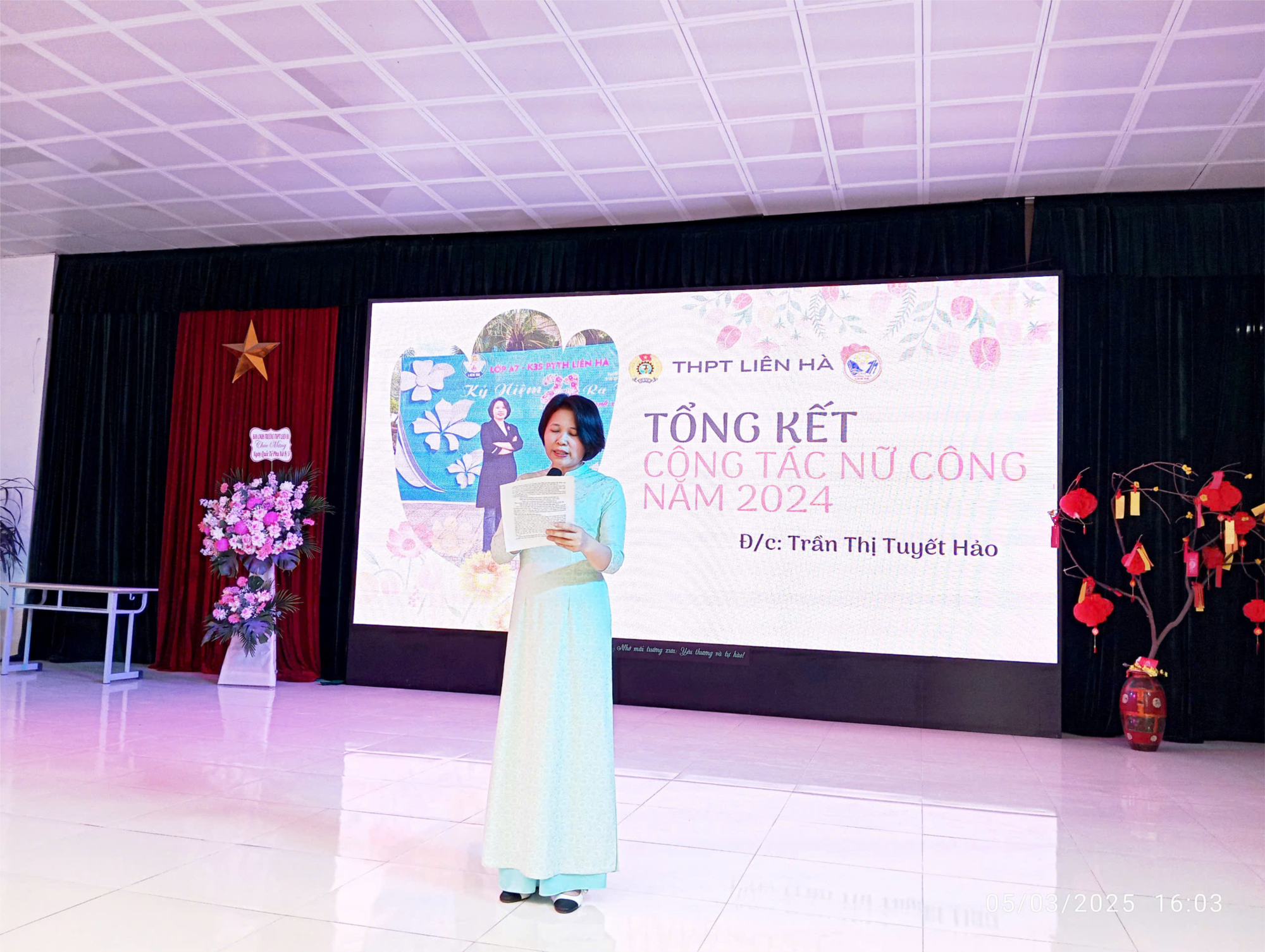 Nhân dịp này, công đoàn trường đã tổ chức lễ tổng kết và trao tặng giấy khen cho các cô giáo đạt danh hiệu "Giỏi việc trường, đảm việc nhà". Đây là sự ghi nhận xứng đáng cho những nỗ lực không ngừng nghỉ của các cô giáo trong công tác giảng dạy cũng như trong cuộc sống gia đình. Những tấm gương điển hình được vinh danh là nguồn động lực để toàn thể cán bộ, giáo viên trong trường tiếp tục cố gắng, cống hiến hết mình vì sự nghiệp trồng người.