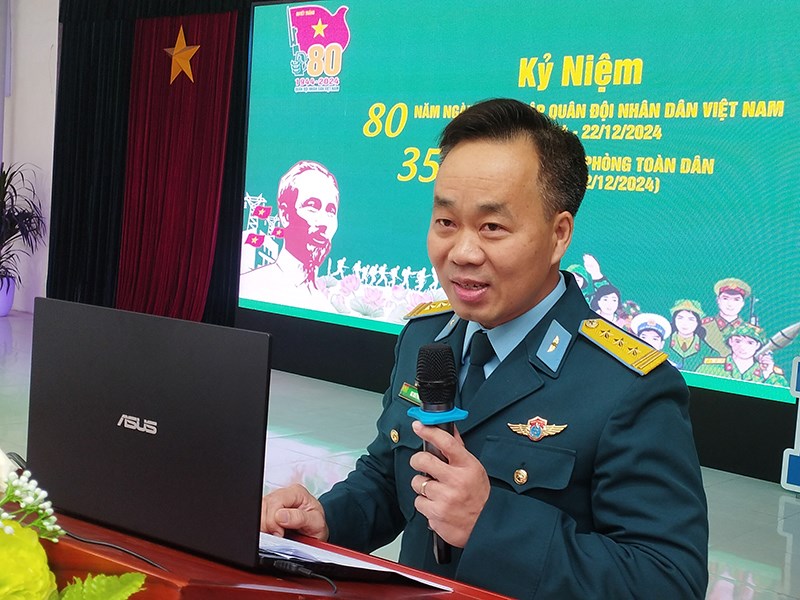 Thượng tá Nguyễn Như Phương - Phó Chính ủy Trung đoàn 236 thông tin các nội dung tại buổi tuyên truyền.