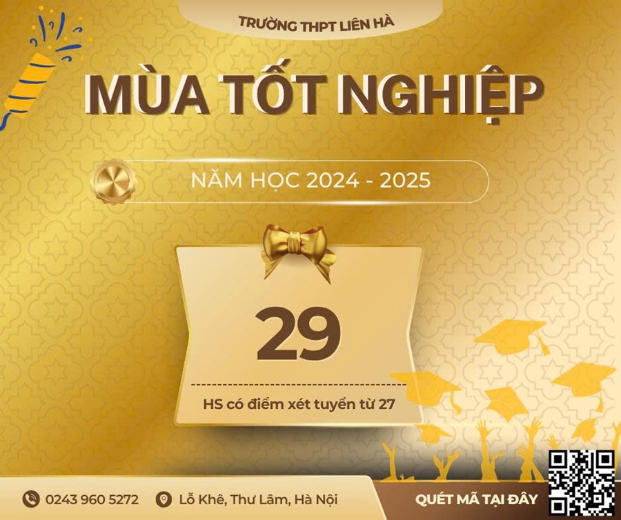 Trường THPT Liên Hà trân trọng vinh danh và chúc mừng các em học sinh khóa 2022–2025 (K59). Các em đã khép lại một hành trình đáng nhớ với kết quả rực rỡ, đồng thời mở ra một chặng đường mới trong cuộc đời – vững vàng, tự tin và đầy khát vọng.