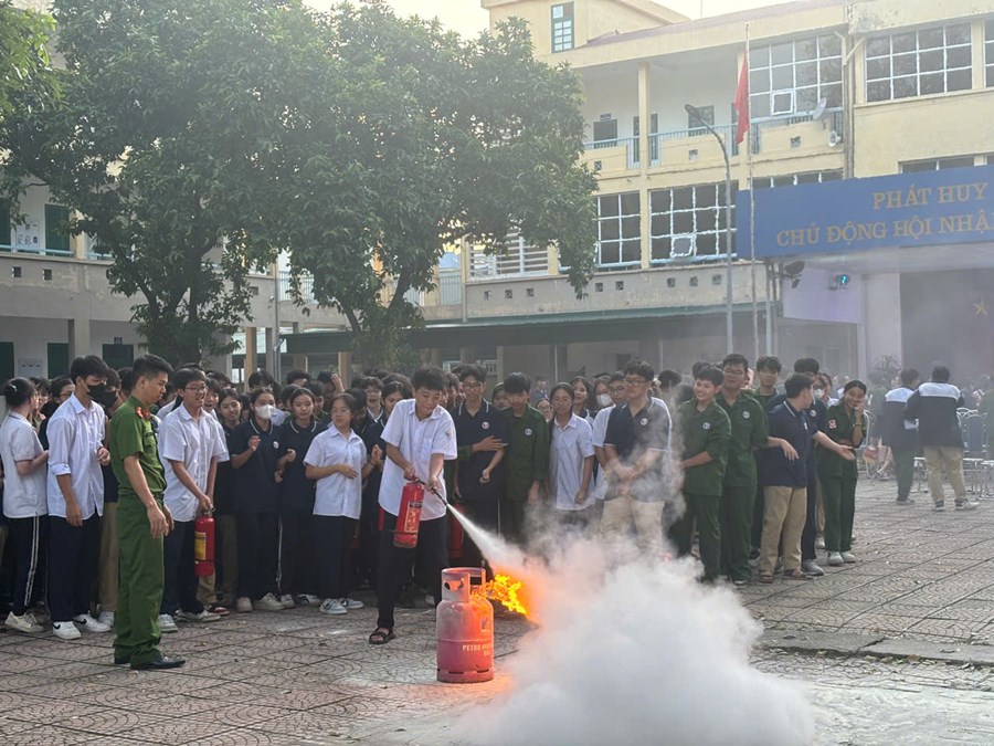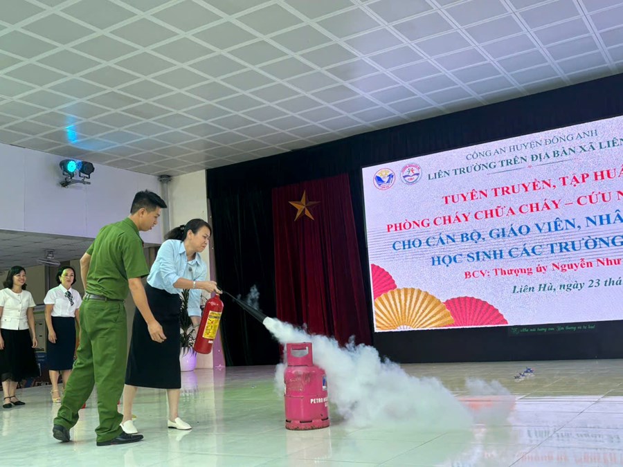 Trong buổi tập huấn, các đồng chí báo cáo viên đến từ Công an huyện Đông Anh đã chia sẻ về sự nguy hiểm của cháy nổ và ý nghĩa quan trọng của việc phòng ngừa, xử lý tình huống khi có sự cố xảy ra. Các giáo viên, học sinh đã được thực hành trực tiếp sử dụng bình chữa cháy dưới sự hướng dẫn của đội PCCC chuyên nghiệp.