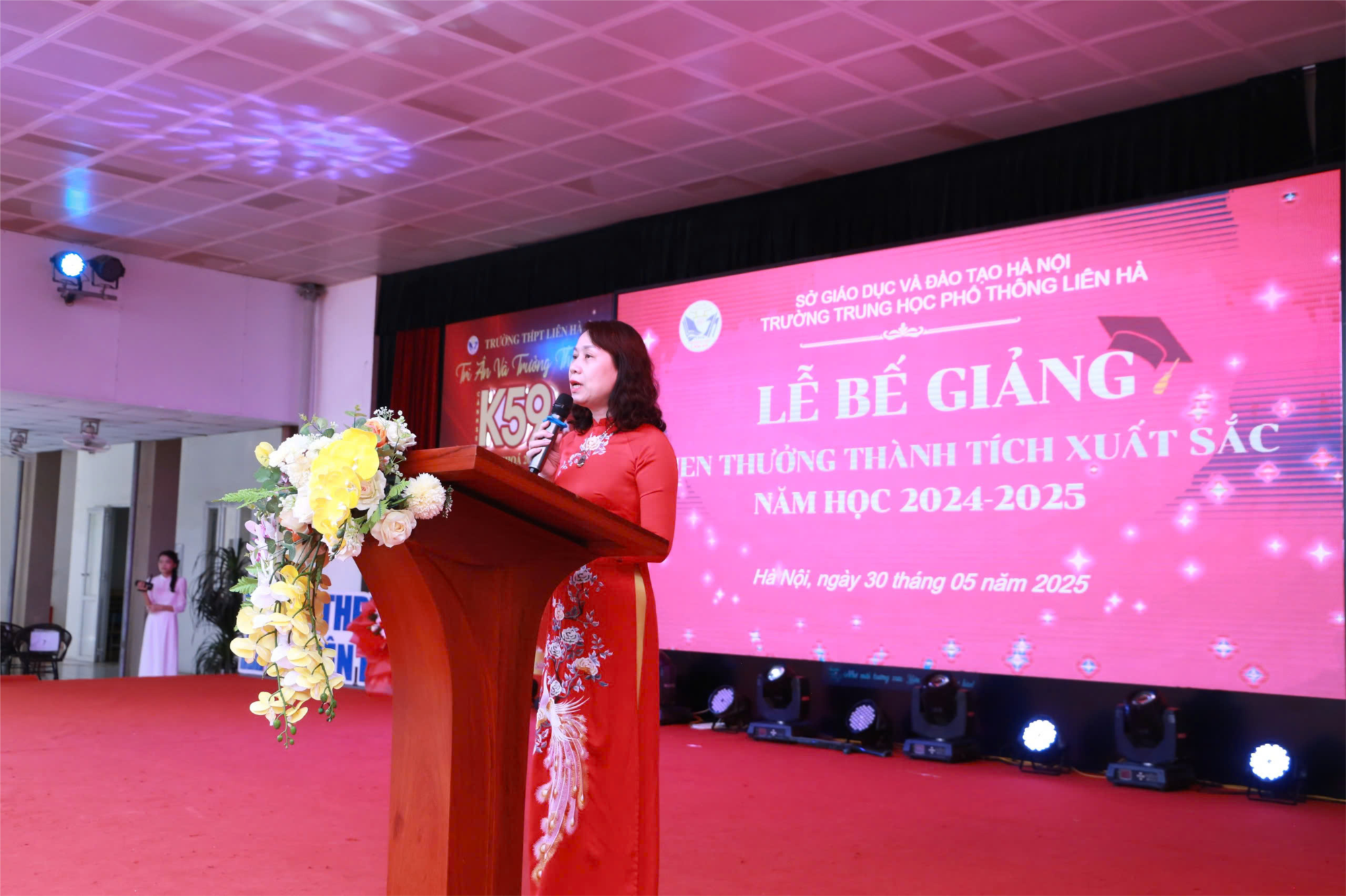 Năm học 2024–2025 đã chính thức khép lại. Niềm vui, tự hào xen lẫn sự bịn rịn, lưu luyến trong từng ánh mắt, nụ cười. Nhưng hơn hết, buổi lễ đã thắp lên tinh thần sẵn sàng đổi mới, khát vọng vươn cao, vươn xa của cả thầy và trò THPT Liên Hà. Từ nền tảng vững chắc hôm nay, tập thể sư phạm nhà trường tin tưởng bước vào năm học mới 2025–2026 với quyết tâm gặt hái thêm nhiều thành công mới – thắng lợi mới – giá trị mới cho ngôi trường thân yêu này.