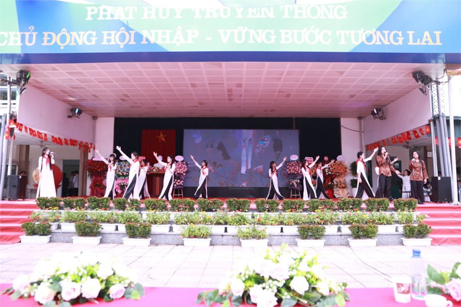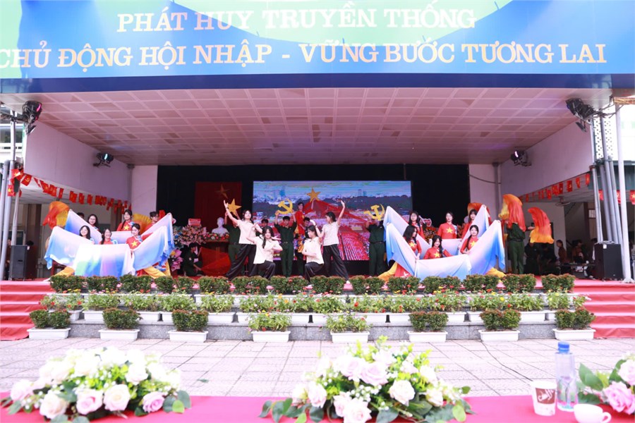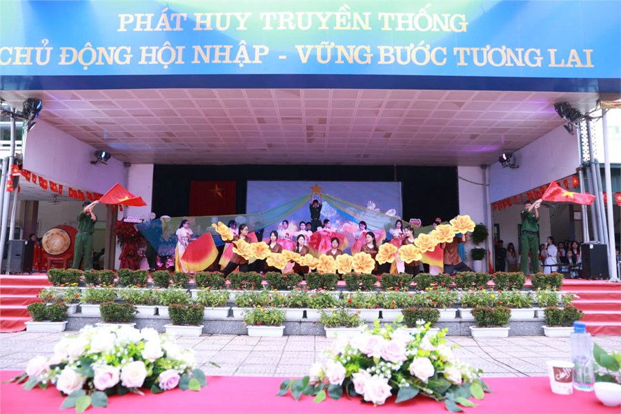 Với chủ đề năm học “Kỷ cương – Sáng tạo – Đột phá – Phát triển”, lễ khai giảng bắt đầu bằng phần diễu hành chào đón học sinh khối 10, tiếp đến là chương trình Khai giảng trực tuyến toàn quốc do Bộ Giáo dục và Đào tạo chủ trì. Thầy và trò nhà trường đã cùng nhau lắng nghe diễn văn của Bộ trưởng Bộ Giáo dục và Đào tạo, theo dõi phim tư liệu “80 năm giáo dục đồng hành cùng đất nước” và hòa nhịp trong khoảnh khắc tiếng trống khai trường vang lên thống nhất trên cả nước.