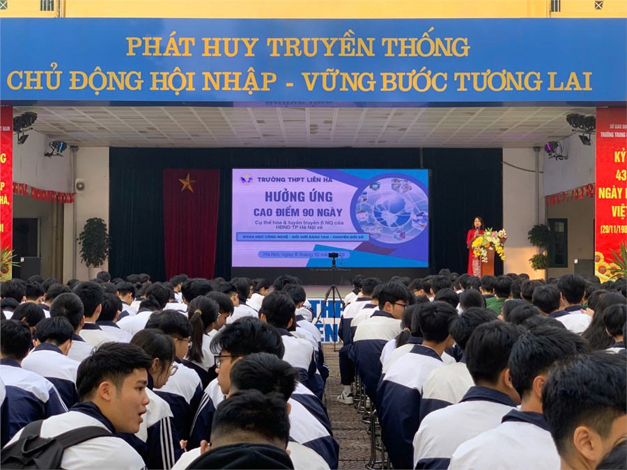 Thực hiện Kế hoạch số 183/KH-THPTLH ngày 03/12/2025 của Trường THPT Liên Hà về việc triển khai đợt cao điểm “90 ngày cụ thể hóa và tuyên truyền, phổ biến các Nghị quyết của HĐND Thành phố về khoa học công nghệ, đổi mới sáng tạo và chuyển đổi số”, chiều ngày 05/12, nhà trường đã tổ chức phát động đợt cao điểm tới toàn thể cán bộ, giáo viên, nhân viên.