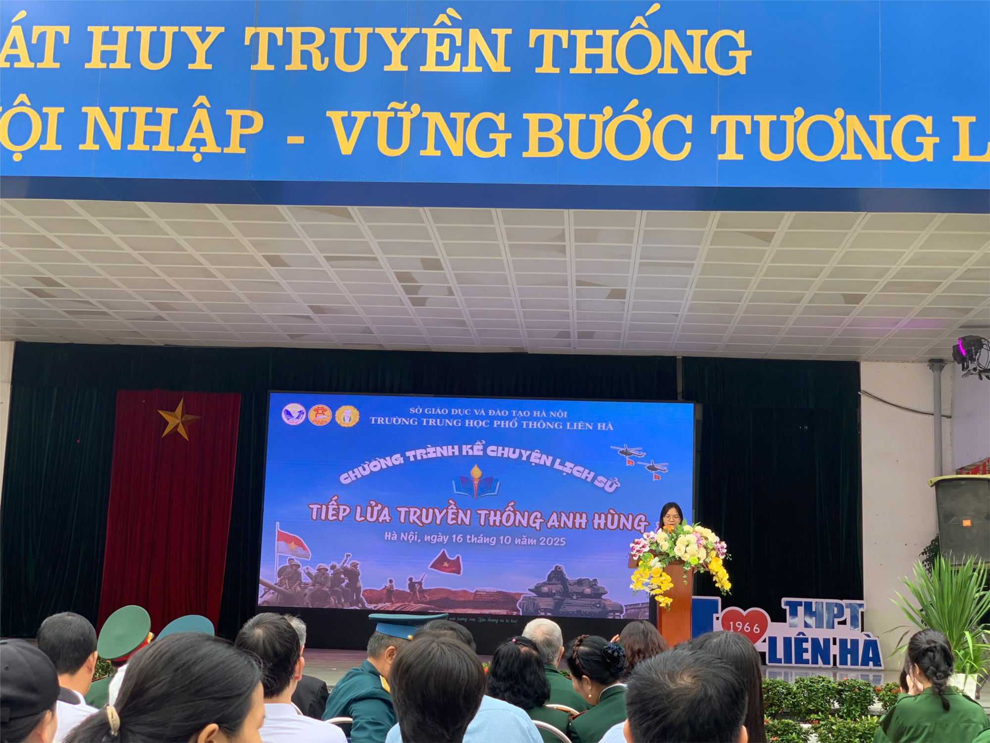 Trong chương trình, học sinh trường THPT Liên Hà đã được lắng nghe Thương binh – CCB Hoàng Quang Chuẩn kể lại những ký ức bi tráng của 81 ngày đêm máu lửa tại Thành cổ Quảng Trị – nơi ghi dấu tinh thần “Quyết tử cho Tổ quốc quyết sinh”. Những ca khúc cách mạng hào hùng do ca sĩ Lê Minh Tâm – Bích Thuận cùng các thầy cô và học sinh thể hiện đã mang đến cho hội trường một bầu không khí xúc động và tự hào. Những chia sẻ đầy tâm huyết của Tiến sĩ Tâm lý học – Nhà giáo ưu tú Nguyễn Thanh Sơn và Cựu TNXP Đoàn Trọng Khiết đã giúp các em học sinh hiểu thêm về giá trị của quá khứ, về trách nhiệm của thế hệ trẻ hôm nay trong việc tiếp nối ngọn lửa truyền thống cha anh.