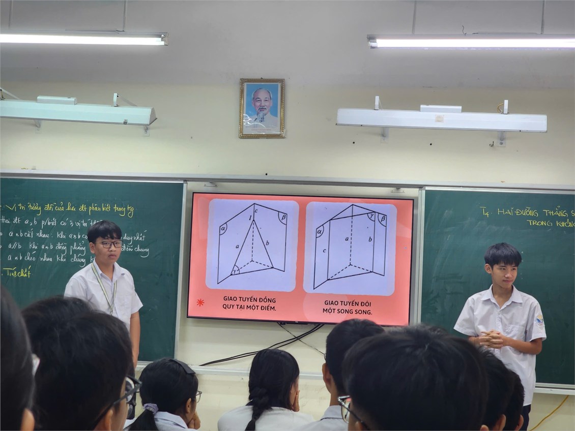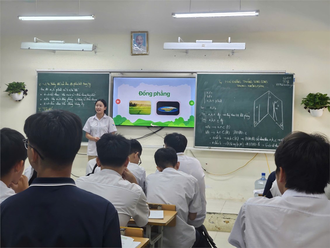 Sáng ngày 18/9/2025, tiết 3, tại phòng học A102, thầy Nguyễn Huy Hùng – giáo viên Toán đã thực hiện tiết dạy dự giờ báo cáo chuyên đề với bài học: Hai đường thẳng song song trong không gian (Hình học 11 – tiết 4).