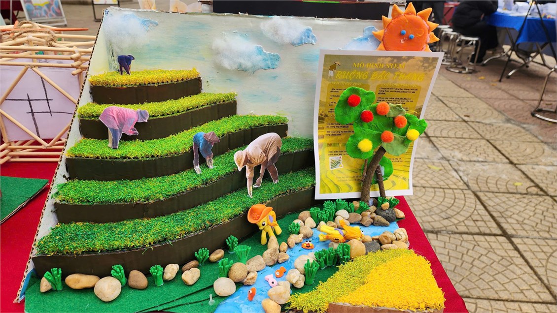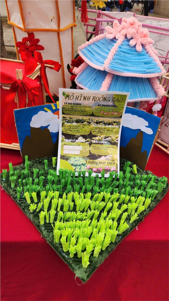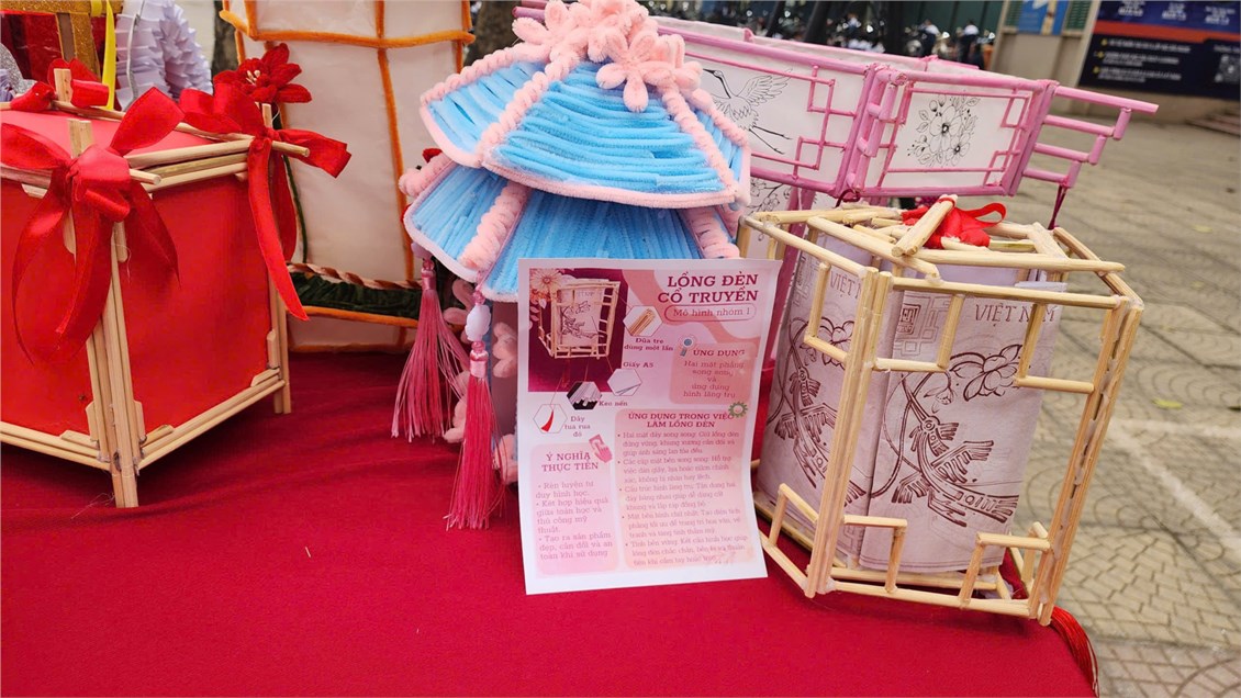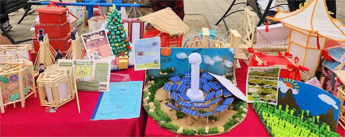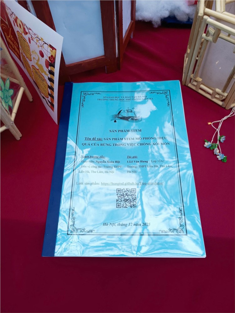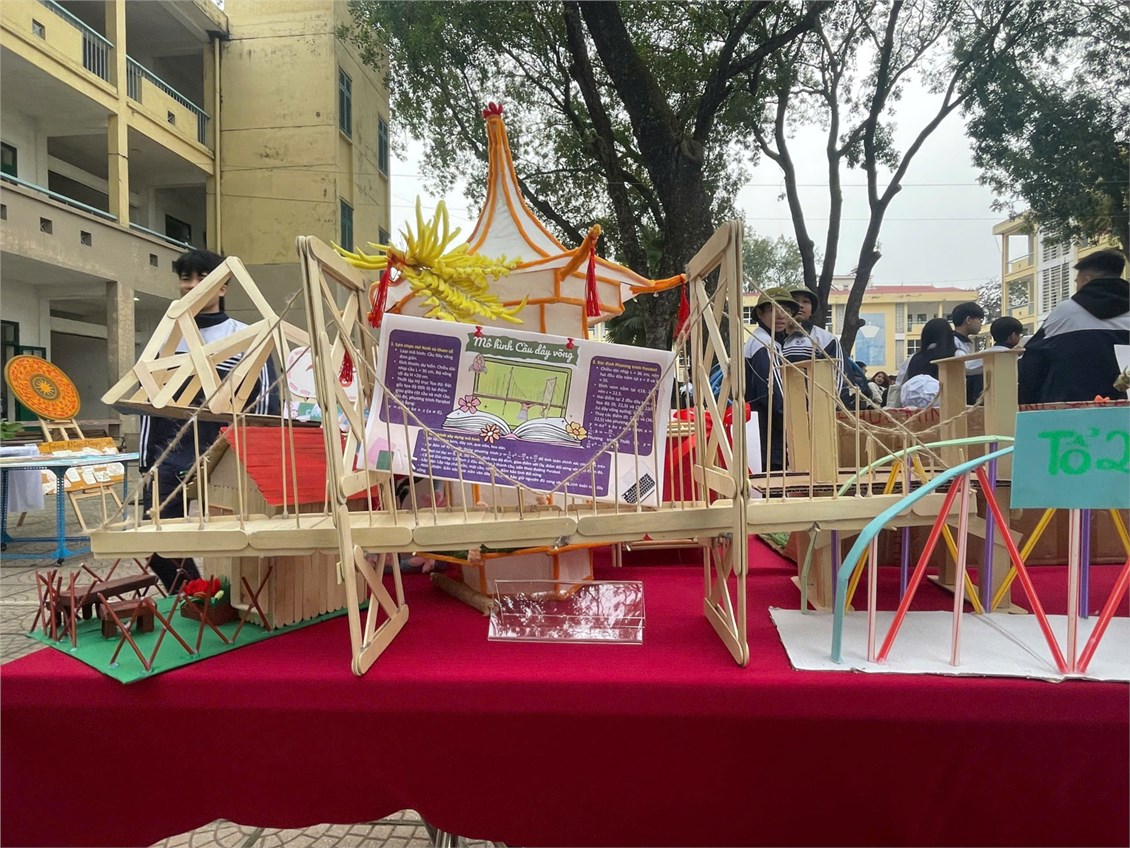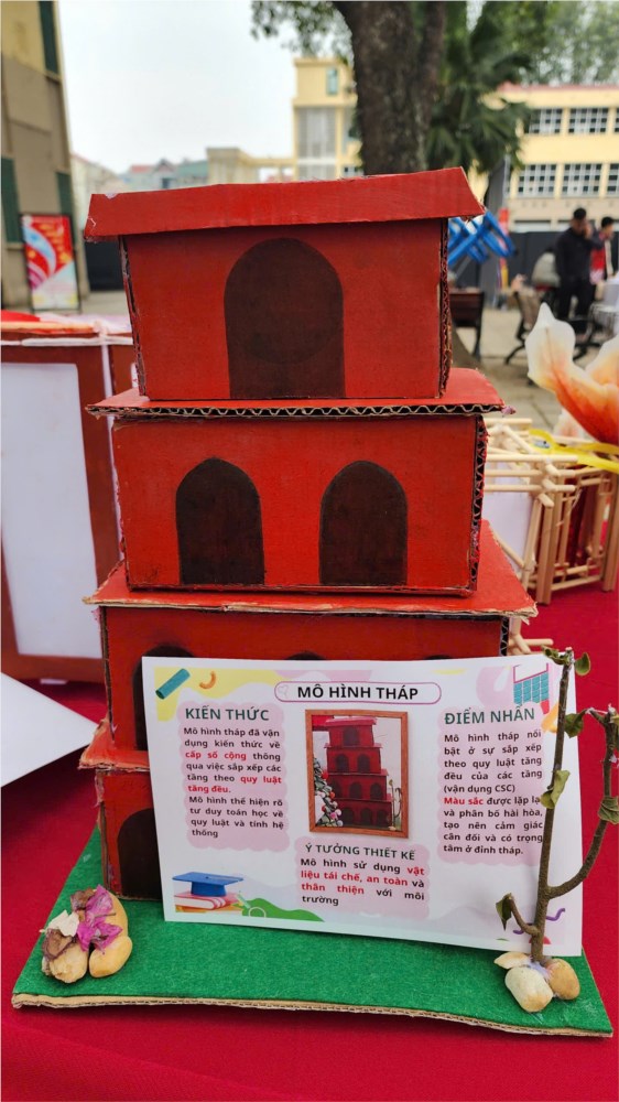 Các sản phẩm trưng bày là kết quả của quá trình học tập gắn với thực tiễn, trong đó học sinh được vận dụng kiến thức Toán học và Tin học để thiết kế mô hình như: mô hình tháp theo quy luật số học, mô hình cầu – hình khối không gian, mô hình ứng dụng năng lượng mặt trời, mô hình lồng đèn truyền thống kết hợp tư duy hình học và mỹ thuật. Bên cạnh đó, gian trưng bày còn giới thiệu sản phẩm STEM của học sinh Lê Văn Hưng – lớp 12A1 với đề tài mô phỏng hiệu quả của rừng trong việc chống xói mòn, thể hiện khả năng vận dụng kiến thức Toán – Tin vào mô phỏng các hiện tượng thực tiễn và nâng cao nhận thức về bảo vệ môi trường.