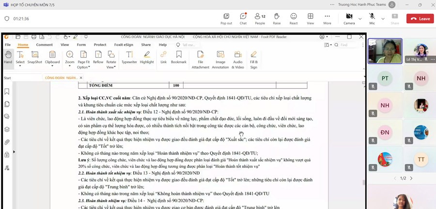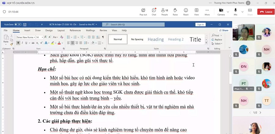 Đặc biệt, việc ứng dụng các nền tảng họp trực tuyến, chia sẻ tài liệu số, và quản lý công việc qua các công cụ công nghệ đã giúp các thành viên trong tổ tiết kiệm thời gian, nâng cao hiệu suất làm việc và tăng cường tính kết nối, hợp tác – ngay cả khi không trực tiếp gặp mặt.