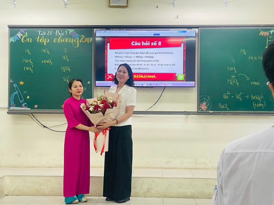 Kết thúc tiết dạy, đại diện Ban giám hiệu - cô Phạm Thị Hiền đã lên tặng hoa chúc mừng cô giáo và tập thể lớp, ghi nhận sự cố gắng, sánh tạo và hiệu quả của giờ học. Cô Hiền đánh giá cao tinh thần đổi mới phương pháp giảng dạy, khả năng ứng dụng công nghệ của cô Minh Thư, đồng thời biểu dương tinh thần học tập chủ động, tích cực của học sinh.