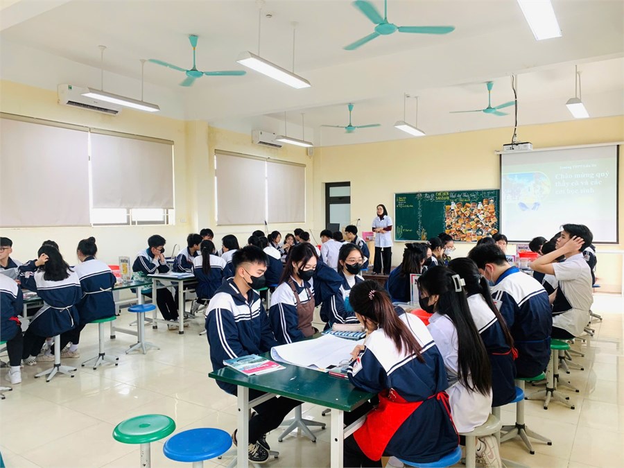 Tiết dự thi của cô Phan Thị Thoan cùng các học sinh lớp 12D7 – trường THPT Đông Anh.