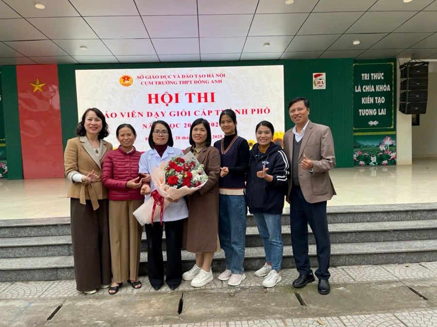 Cô Phạm Thị Hiền – Hiệu trưởng trường THPT Liên Hà, thầy Nguyễn Xuân Việt – PHT trường THPT Đông Anh và các thầy cô trong tổ Hóa sinh chúc mừng cô giáo Phan Thị Thoan