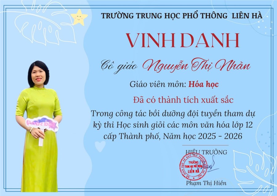 Những hoạt động ý nghĩa trên không chỉ là lời tri ân sâu sắc hướng về Ngày Giải phóng Thủ đô 10/10 và Ngày Phụ nữ Việt Nam 20/10, mà còn là minh chứng cho tinh thần học tập, lao động và cống hiến của tập thể tổ Hóa – Sinh trường THPT Liên Hà. Nhân ngày 20/10 – ngày tôn vinh phụ nữ Việt Nam, xin gửi đến các cô giáo lời tri ân sâu sắc và lời chúc tốt đẹp nhất – chúc các cô luôn mạnh khỏe, hạnh phúc và tiếp tục truyền ngọn lửa đam mê học tập cho các thế hệ học trò.