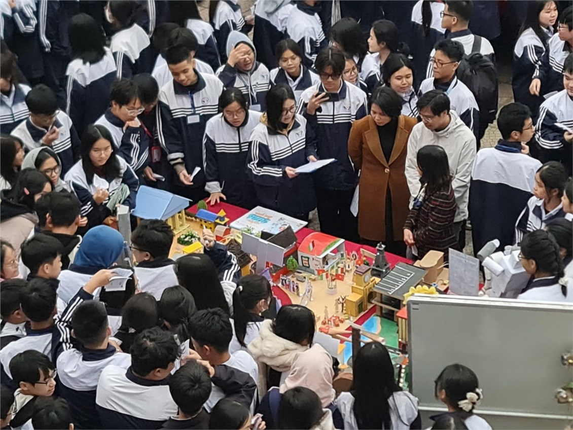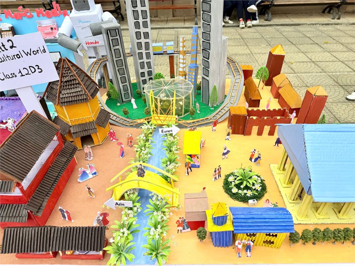 Đặc biệt, mô hình “Thành phố đa văn hoá trong tương lai” gây ấn tượng mạnh với người xem bởi sự kết hợp hài hòa giữa kiến trúc, trang phục, sinh hoạt văn hóa của nhiều quốc gia, khu vực khác nhau. Các chi tiết được sắp xếp khoa học, sinh động, thể hiện rõ tinh thần giao thoa văn hóa, tôn trọng sự khác biệt và cùng phát triển – những giá trị cốt lõi mà môn Ngoại ngữ hướng tới.