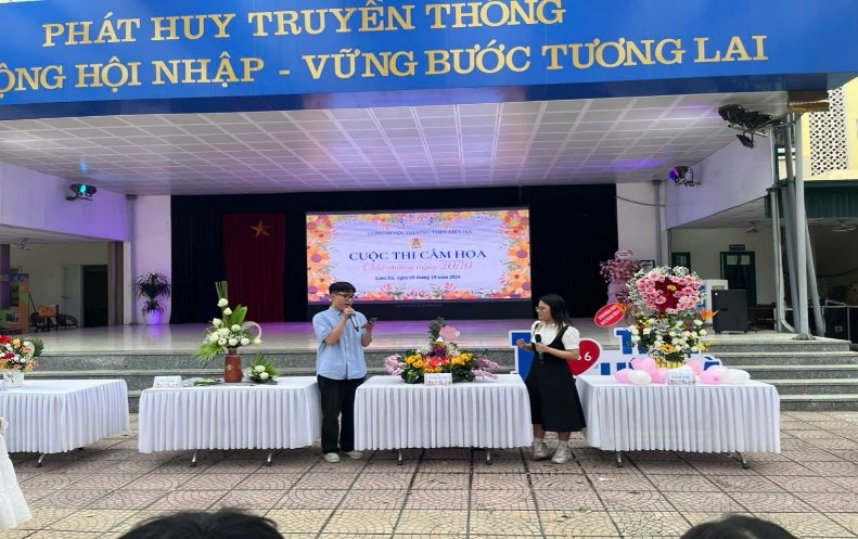 Ngoài các tiết dạy ấn tượng, Tổ Ngoại Ngữ - Thể Dục - Quốc Phòng còn tham gia hội thi cắm hoa. Với sự sáng tạo và khéo léo của các thành viên, những tác phẩm hoa tươi thắm được trình bày tinh tế, không chỉ mang tính nghệ thuật mà còn thể hiện lòng tri ân sâu sắc đối với phụ nữ Việt Nam trong ngày lễ đặc biệt này.