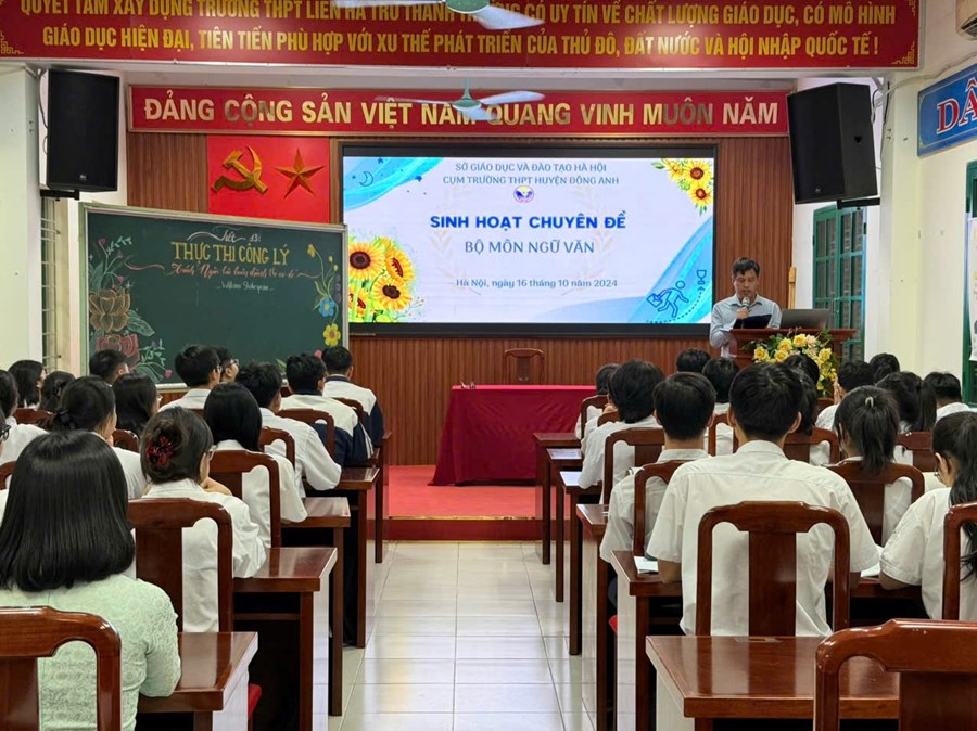 Với mục đích trên, để thực hiện nhiệm vụ năm học 2024 – 2025 của Sở giáo dục và đào tạo Hà Nội, của cụm trường THPT Đông Anh, trường THPT Liên Hà đã tổ chức buổi sinh hoạt chuyên đề môn Ngữ văn với thành phần tham dự gồm đại diện BGH và giáo viên Ngữ văn các trường trong cụm trường THPT Đông Anh.