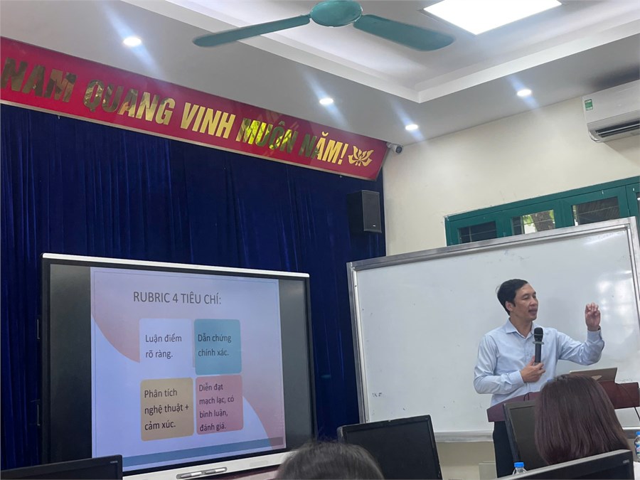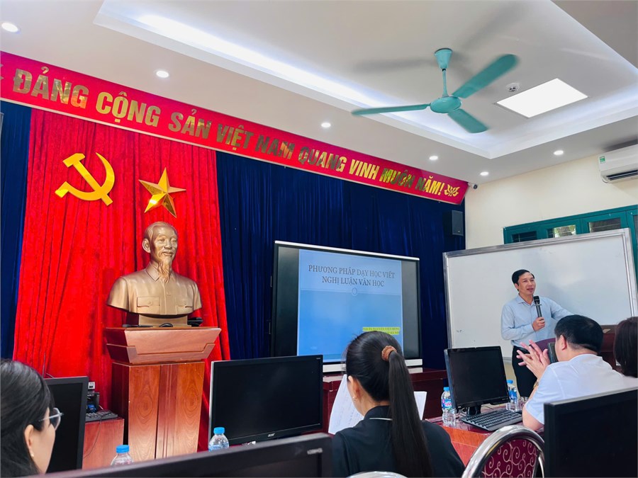 Buổi sinh hoạt chuyên môn có sự hiện diện và hướng dẫn của Phó Giáo sư, Tiến sĩ Nguyễn Việt Hùng – Phó Trưởng Bộ môn Khoa Ngữ văn, Trường Đại học Sư phạm Hà Nội. Với phong cách gần gũi, sâu sắc và thực tiễn, PGS.TS Nguyễn Việt Hùng đã mang đến nhiều nội dung thiết thực xoay quanh công tác dạy học viết với môn Ngữ văn trong bối cảnh chương trình giáo dục phổ thông 2018.