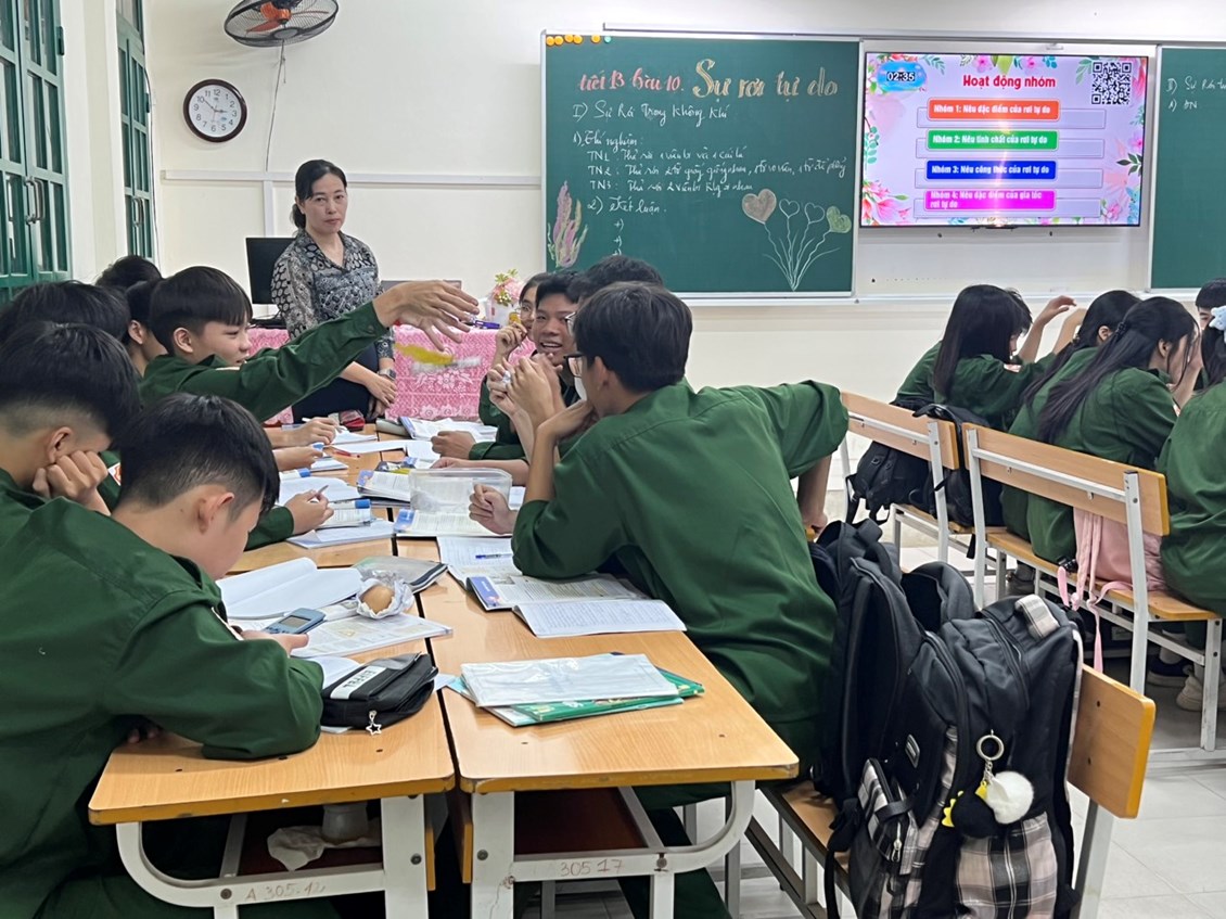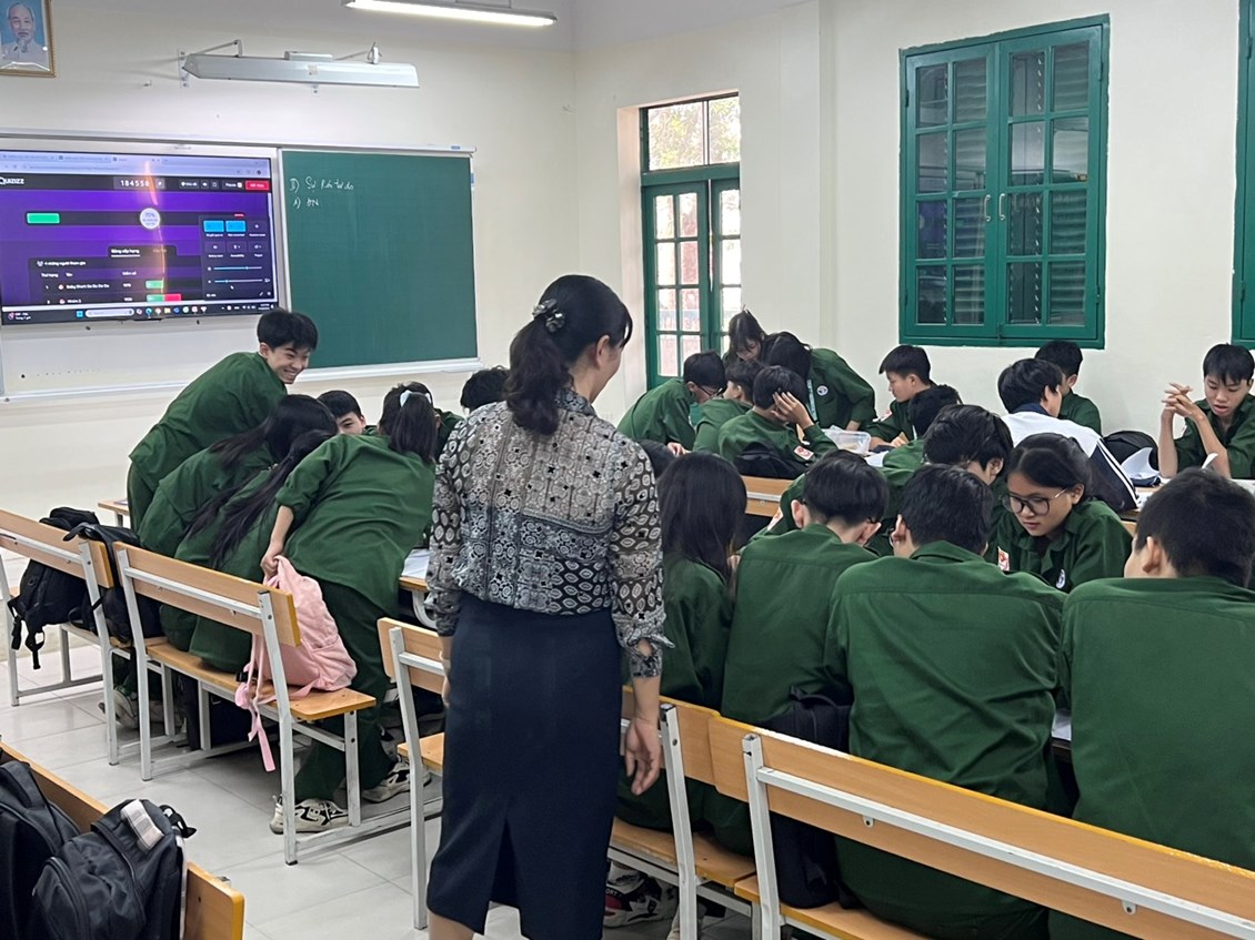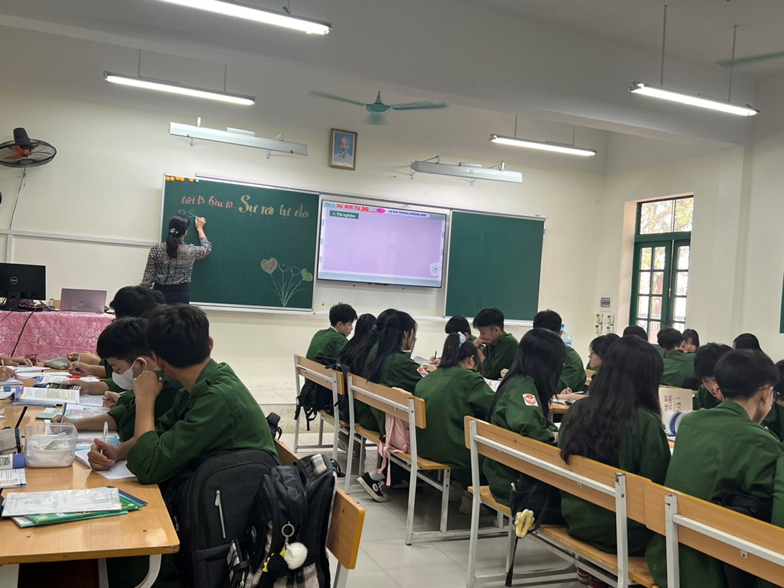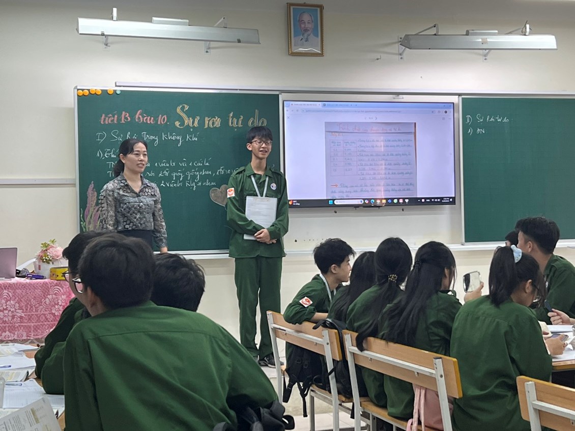 Hòa chung trong không khí hân hoan đó. Ngày 9/11/2024 cô giáo Phạm Thị Nghĩa, giáo viên giảng dạy môn Vật lý đã có giờ dạy thao giảng tại lớp 10A5. Tiết học với nhiều phương pháp giảng dạy hiện đại, lấy học sinh làm trung tâm và có sử dụng rất nhiều công nghệ thông tin trong bài giảng như: Canvas, Pallet, Quizizz,.... Tiết học thực sự đã thu hút và tạo được sự hứng thú trong học tập cho học sinh giúp học sinh không chỉ chủ động trong tư duy mà còn giúp các em tăng khả năng làm việc việc nhóm và thuyết trình trước đám đông. Đó đều là những kĩ năng quan trọng trong cuộc sống cũng như công việc của các em sau này.